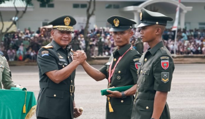 PEDOMANRAKYAT, GOWA – Panglima Kodam (Pangdam) XIV/Hasanuddin Mayjen TNI Bangun Nawoko memimpin Upacara Penutupan Pendidikan Pertama Bintara (Dikmaba) Infanteri TNI AD Gelombang II TA 2025 dan Pendidikan Pembentukan Bintara (Diktukba) TNI AD Gelombang I TA 2026. Kegiatan tersebut berlangsung di Lapangan Sapta Marga, Rindam XIV/Hasanuddin, Jalan Malino, Pakatto, Kabupaten Gowa, Rabu (7/1/2026).
