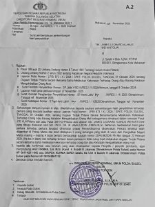 Sirul, selaku Direktur LKBH Makassar, mengungkapkan bahwa setelah proses penyelidikan selama 16 bulan yang dianggap tertutup dan tidak memberikan keadilan bagi keluarga, tiba-tiba pada Rabu (7/1/2026) siang, kliennya menerima surat yang dikirim melalui jasa ekspedisi JNE.