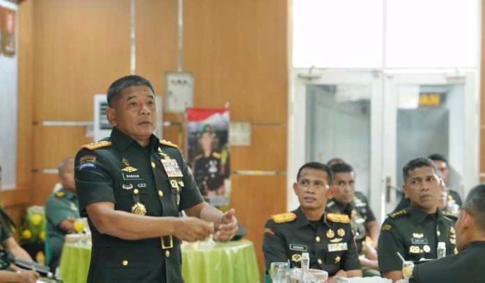 PEDOMANRAKYAT, GOWA – Pangdam XIV/Hasanuddin Mayjen TNI Bangun Nawoko menegaskan komitmennya dalam mendorong terwujudnya Bintara TNI AD yang profesional, tangguh, dan siap menghadapi dinamika tugas ke depan. Hal tersebut disampaikan saat menerima paparan Rencana Garis Besar (RGB) Latihan Dalam Satuan (LDS) Kader Pelatih (Kadertih) Brigif Teritorial Pembangunan (TP) dan Yonif TP Kodam XIV/Hasanuddin Tahun Anggaran 2026, yang berlangsung di Mako Rindam XIV/Hasanuddin, Kabupaten Gowa, Rabu (7/1/2026).