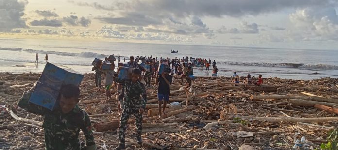 Tim Gabungan dan Bantuan Logistik Bencana Banjir Tiba di Loloda Utara