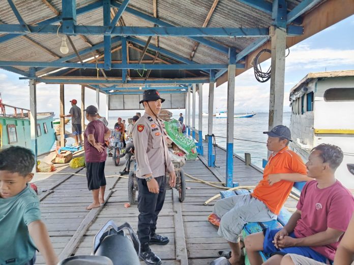 Dalam suasana bersahabat, personel Polsubsektor Kepulauan tidak hanya melakukan pemantauan kamtibmas, tetapi juga membantu warga yang hendak turun dari kapal, sembari memberikan imbauan keselamatan di tengah kondisi cuaca yang kerap berubah ekstrem.